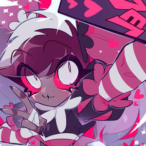 Velvet is the Social Media Overlord, taking the internet by storm with her kawaiicore aesthetic and surprisingly sweet personality. She may be all over the place, energetic and more than eager to say hi and make new friends. Surely that's because she's such a misplaced angel that she's too pure for Hell!!That is what most of her fan-base thinks of her anyway. Velvet is a young woman obsessed with her appearance and what other's think of her. The whole world has to love her to make her feel loved. And it's never enough!She has a co-dependence relations with Vox and Valentino, more than willing to kill someone who takes a little too much of their attention from her; Angel Dust being her most hated person. It doesn't matter that it isn't his fault. It's his fault for existing in her eyes.Vox's and Valentino's opinions matter so much more to her than anyone else's; they managed to get her to actually care for them and she believes the two TRULY loves her! She will constantly prove how much she deserves to be loved. Whether it's making them breakfast, advertising their products or killing Jerry for badmouthing them on-line!LOVE ME LOVE ME LOVE ME LOVE ME